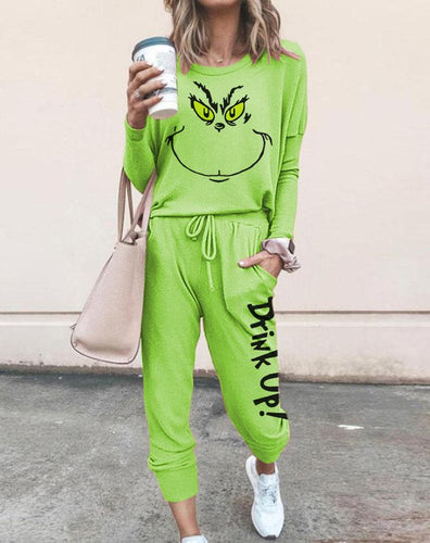 Women The Grinch Drink Up Printed Long Sleeve Suits