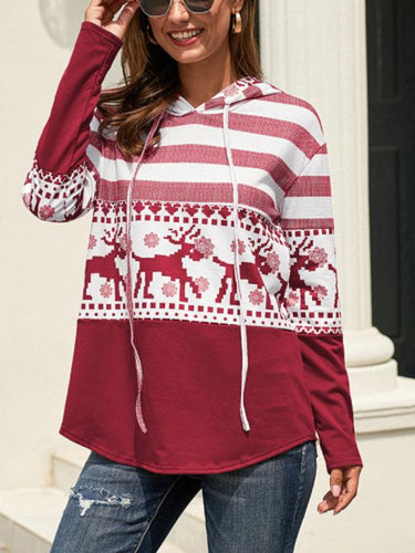 Women's Autumn and Winter Christmas Elk Print Casual Hooded Sweatshirt
