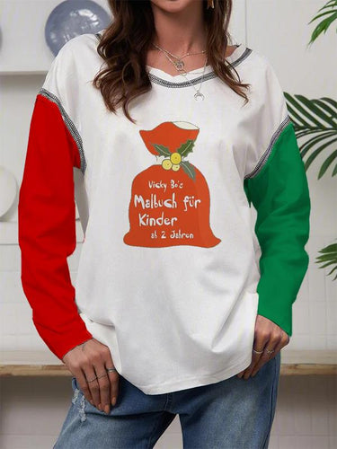 Women's Casual Loose Christmas Christmas Gift Bag Vicky Bo'S Malbuch Für Kinder Ab 2jahren Printed Pullover Sweater