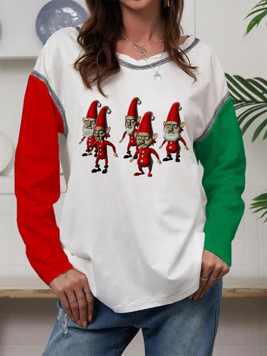Women's Casual Loose Christmas 5 Christmas Dwarfs Printed Long Sleeve T-Shirt