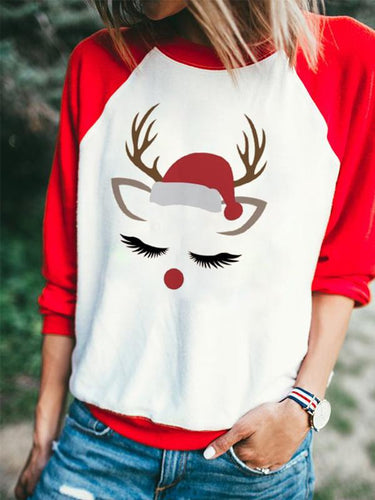 Women's Christmas Animal Print Long Sleeve Loose T-shirt