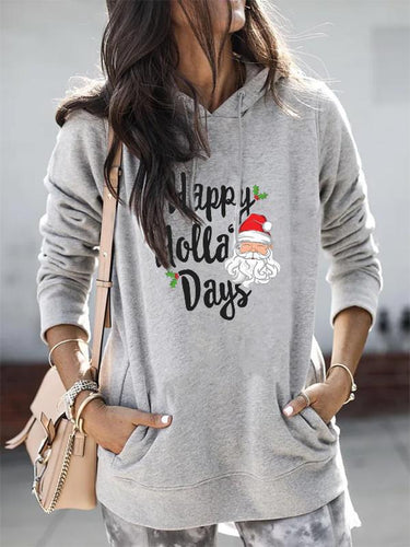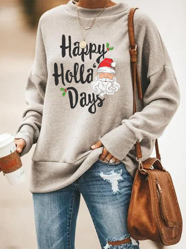 Women's Casual Loose Christmas Happy Holla' Days Letter Pattern Printed Pullover Sweater