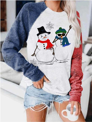Women's Casual Snowman Snowflake Printed Color Block Sweatshirt