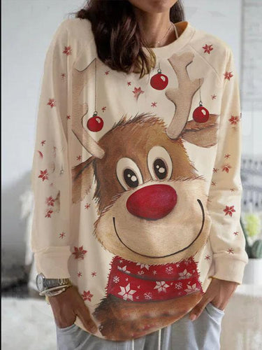 Women's casual round neck Christmas print sweatshirt