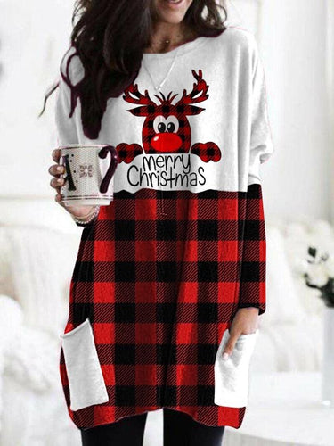 Women's Christmas Hallmark stitching pocket knit top