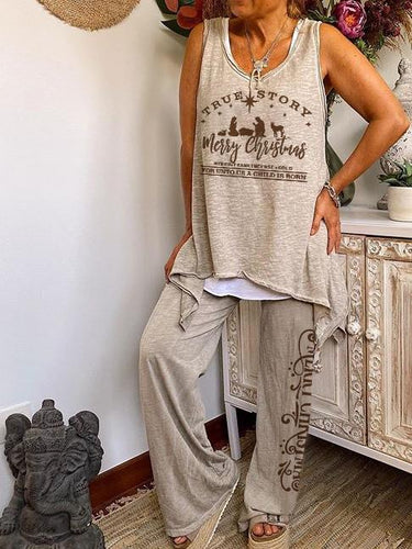 Women's Christmas Faith TRUE STORY Vest Wide Leg Pants Two Piece Set