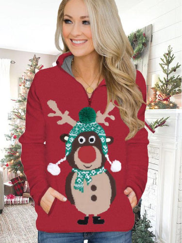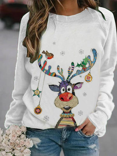 Women's Christmas Elk Print Casual Cute Sweatshirt