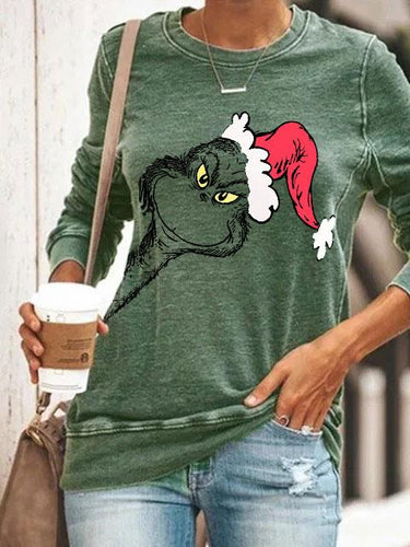 Women's Christmas Monster Elements Print Long Sleeve Sweatshirt