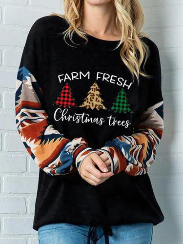 Women's Christmas Farm Fresh Christmas Trees Arm Print Sweatshirt