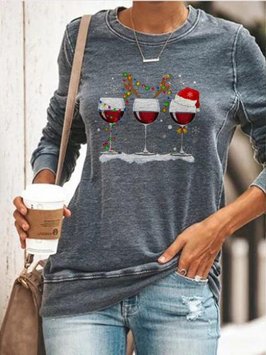 Women's casual round neck Christmas print sweatshirt