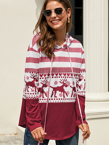 Women's Autumn and Winter Christmas Elk Print Casual Hooded Sweatshirt