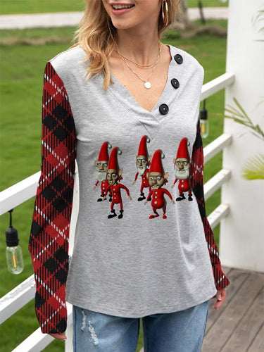 Women's Casual Loose Christmas 5 Christmas Dwarfs Printed Long Sleeve T-Shirt