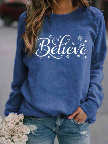 Women's Believe Christmas Print Sweatshirt