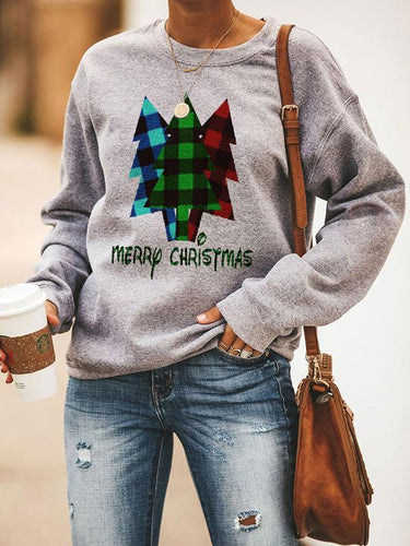 Women's Casual Loose Christmas Christmas Tree Merry Christmas Letter Pattern Printing Pullover