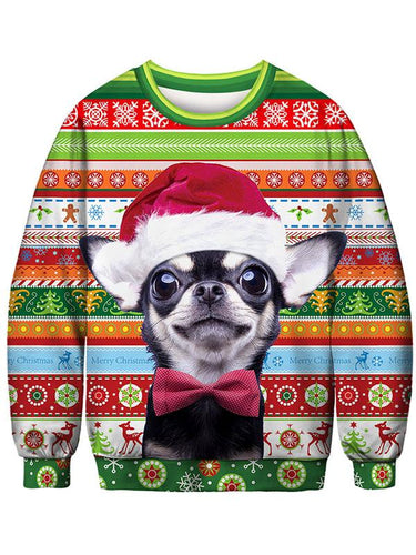 Women's Christmas Dog Printed Sweater-white/pink/red/green,4size