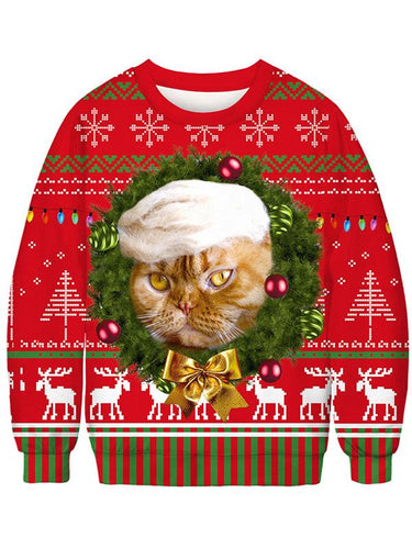 Women's Christmas Cat Printed Sweater-8color/4size