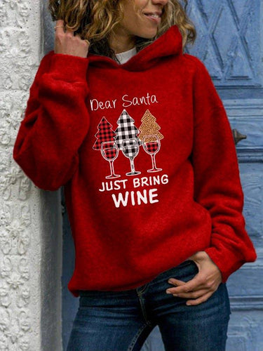 Women's Christmas Dear Santa JUST BRING WINE Printed Hoodie Sweatshirts