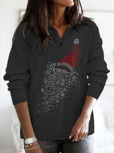 Women's Christmas Santa Print Zip Top
