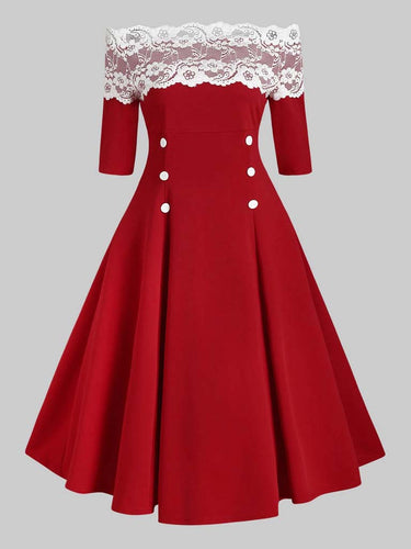 Women's Christmas One-Neck Lace Strapless Hip Slim Dress