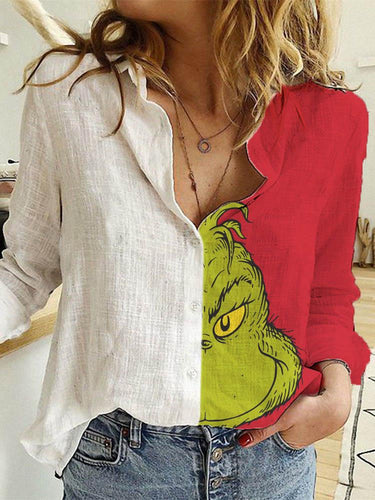 Grinch Face Colorblock Long Sleeve T-Shirt